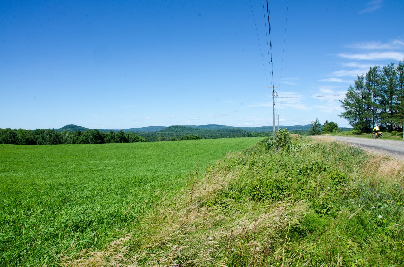 We eventually parted ways with the Sentier NB Trail and jumped onto the road. That's when the wind's force hit us full bore. The wind was blowing directly into our faces and would for the entire day. It made climbing the hills a little bit harder, but what's worse is that it deprived us of a rewarding free-fall on the downside of the hill. The wind was so strong that we couldn't move down the hill without pedaling. That's just not fair!